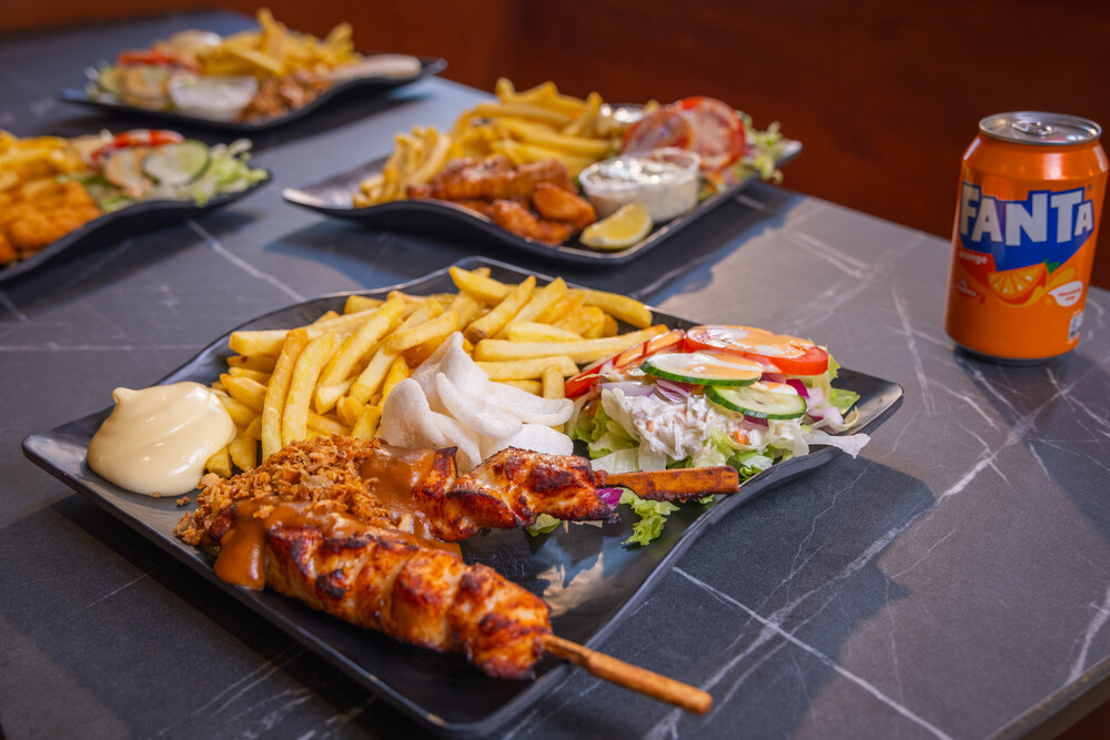 - Naast de lekkerste friet en snacks bieden wij ook eenvoudige maar smaakvolle maaltijden aan zoals een schnitzel, sate, shoarma of bami menu.
